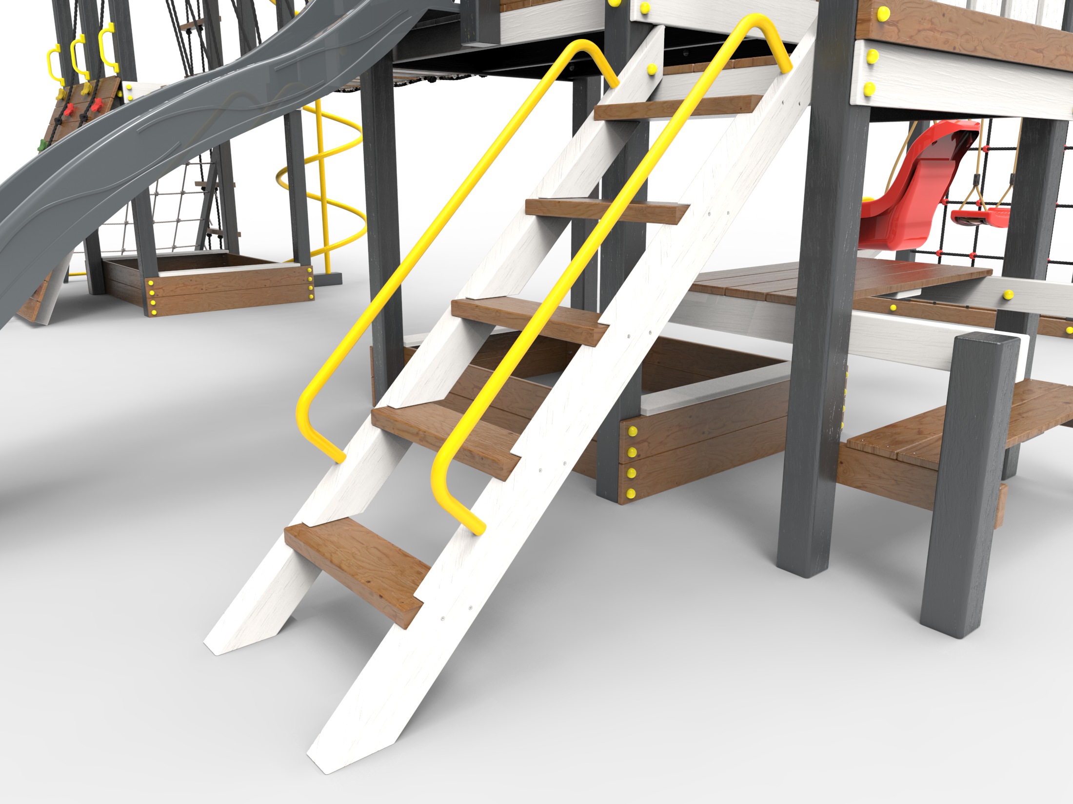 Обращаем Ваше внимание, что фактический цвет детской площадки может отличаться от представленных фото на сайте. Специфика окраски нетоксичными пропитками и красителями допускает отклонения в цветовой гамме отгружаемых изделий. Также обратите внимание, что фактический цвет может отличаться из-за цветопередачи устройства на котором Вы смотрите фото. Производитель оставляет за собой право менять цвет отдельных деталей и комплектующих(включая пластик, канаты и пр.), при этом сохраняя весь функционал и характеристики товара.