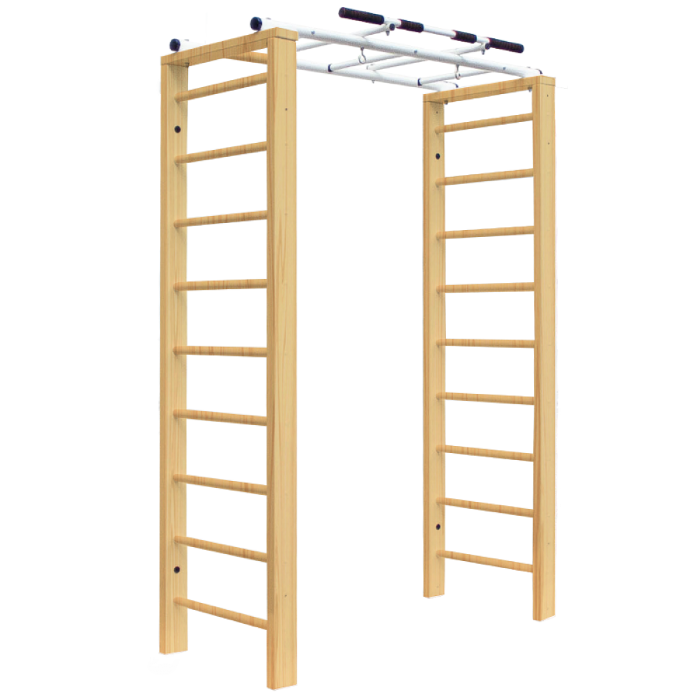 Комплекс Luca - это идеальный выбор для домашней тренировки. Этот комплекс устанавливается на стену и включает в себя две шведские стенки, соединенные между собой рукоходом с турником.
